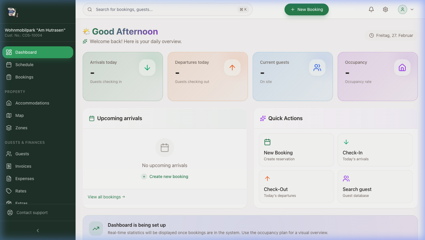 Manage your campsite efficiently with Campsite OS. Bookings, guests, invoices and IoT devices – all in one platform.