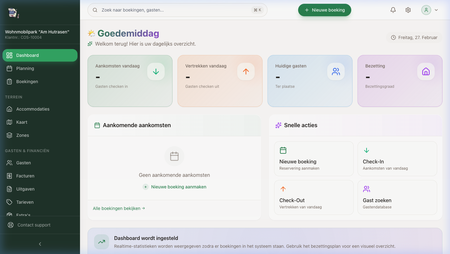 Beheer uw camping efficiënt met Campsite OS. Boekingen, gasten, facturen en IoT-apparaten – alles in één platform.