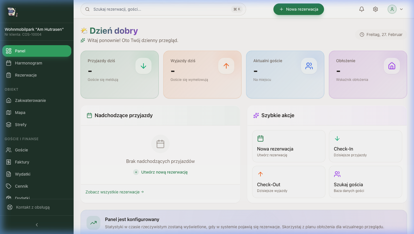 Zarządzaj swoim kempingiem efektywnie z Campsite OS. Rezerwacje, goście, faktury i urządzenia IoT – wszystko na jednej platformie.